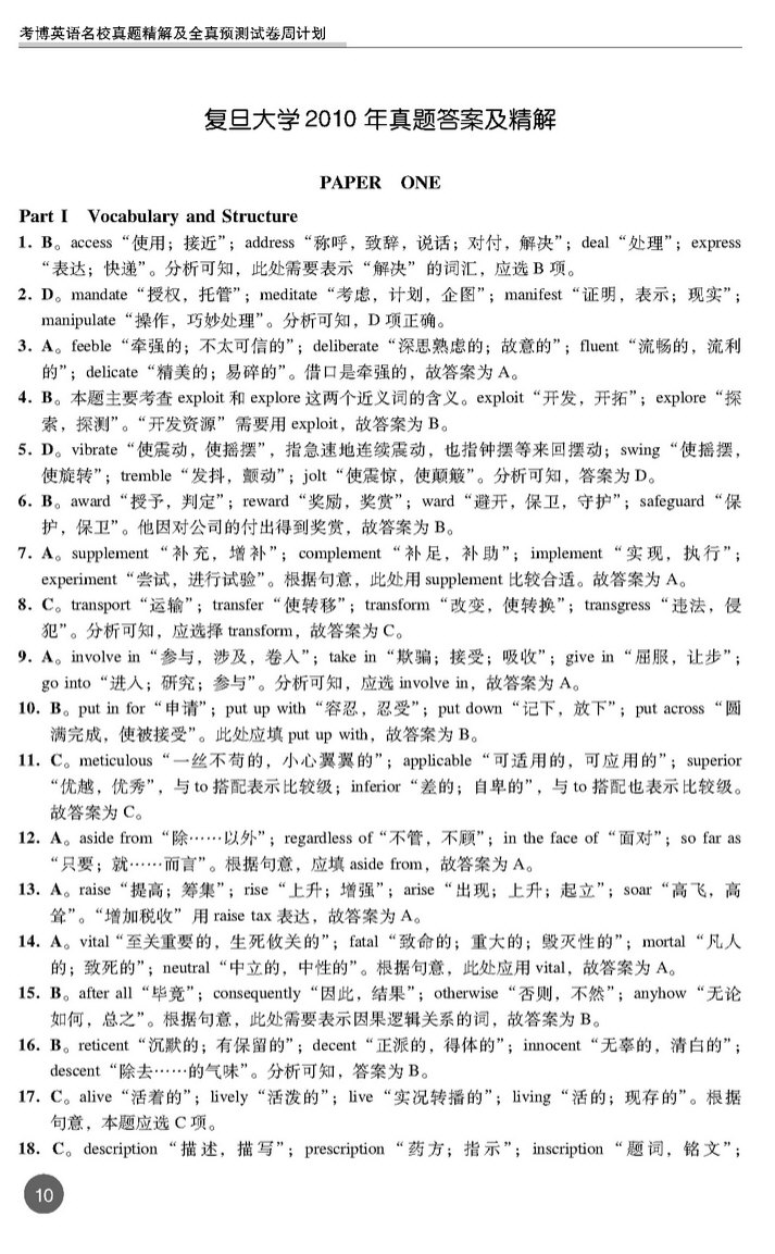 复旦大学2010年考博英语真题 打印版 套装专供(10)