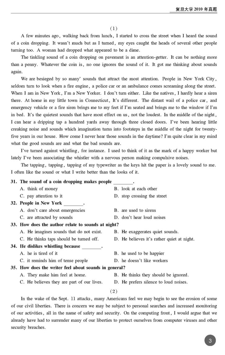 复旦大学2010年考博英语真题 打印版 套装专供(3)