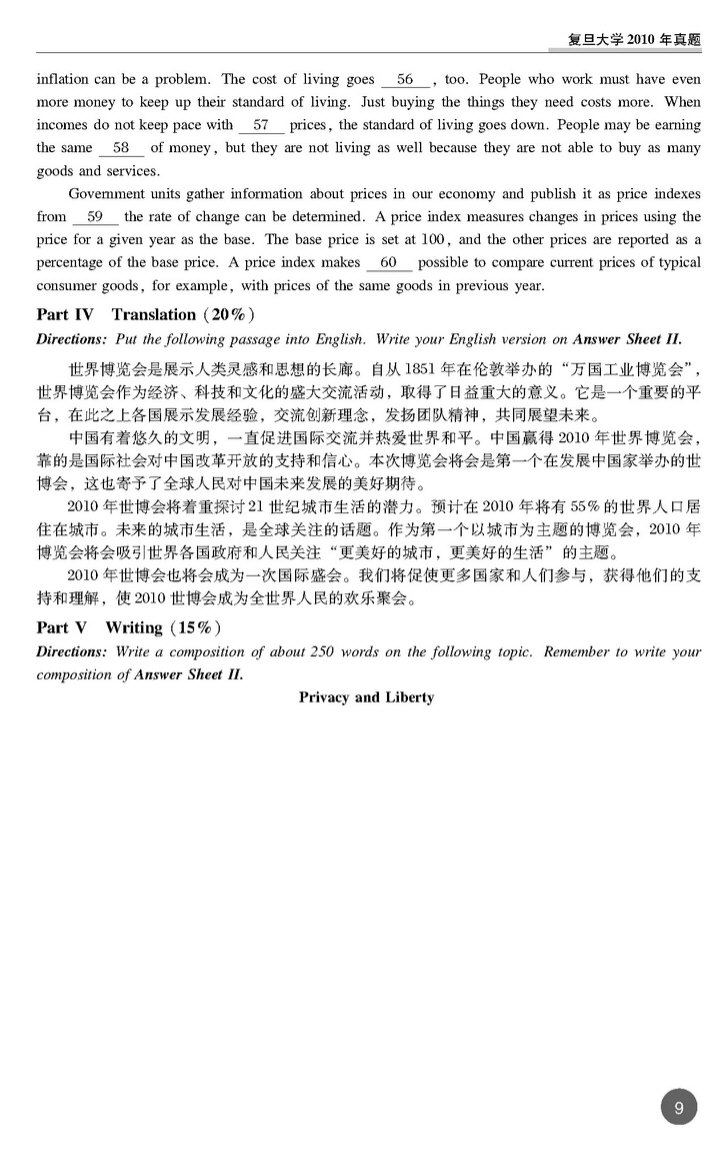 复旦大学2010年考博英语真题 打印版 套装专供(9)