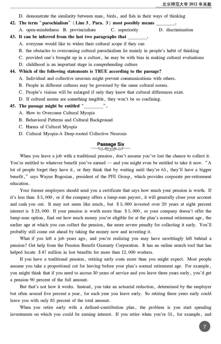 北京师范大学2012年考博英语真题 打印版 套装专供(7)