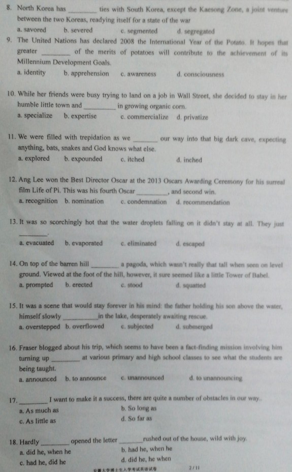 安徽大学2013考博英语试卷真题(2)