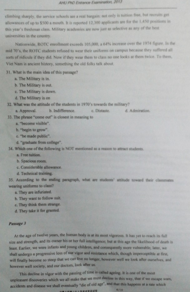 安徽大学2013考博英语试卷真题(6)