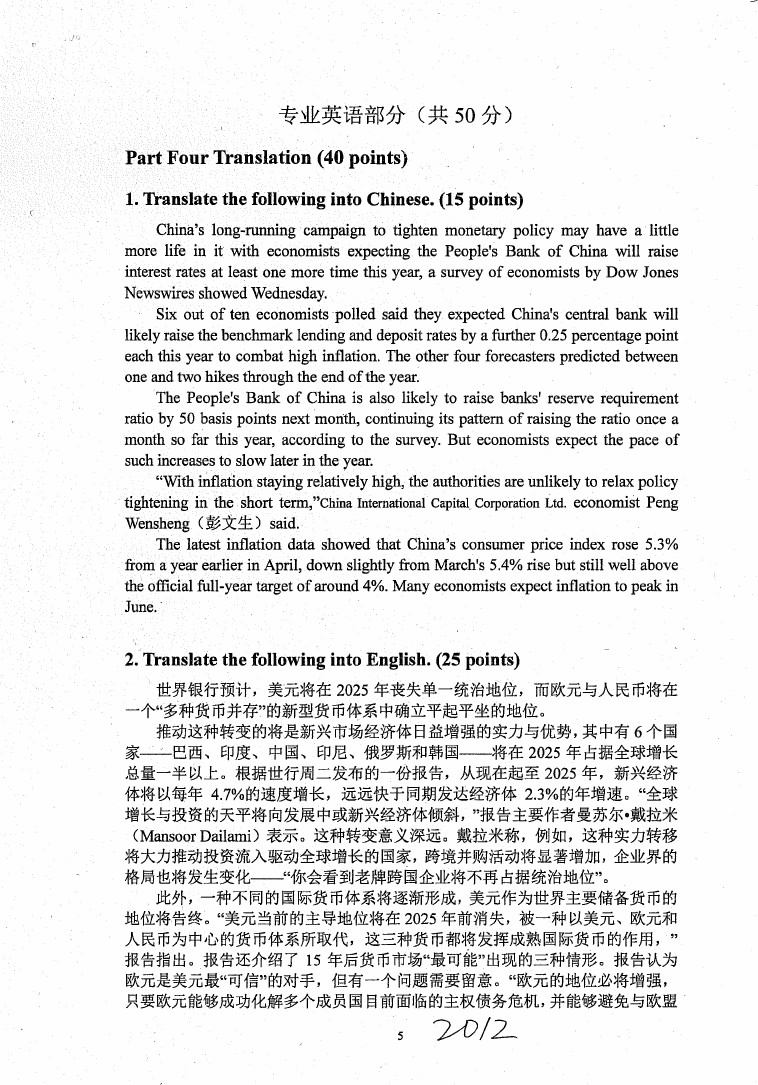 • 对外经济贸易大学英语学院357英语翻译基础[专业硕士]历年考研真题及详解