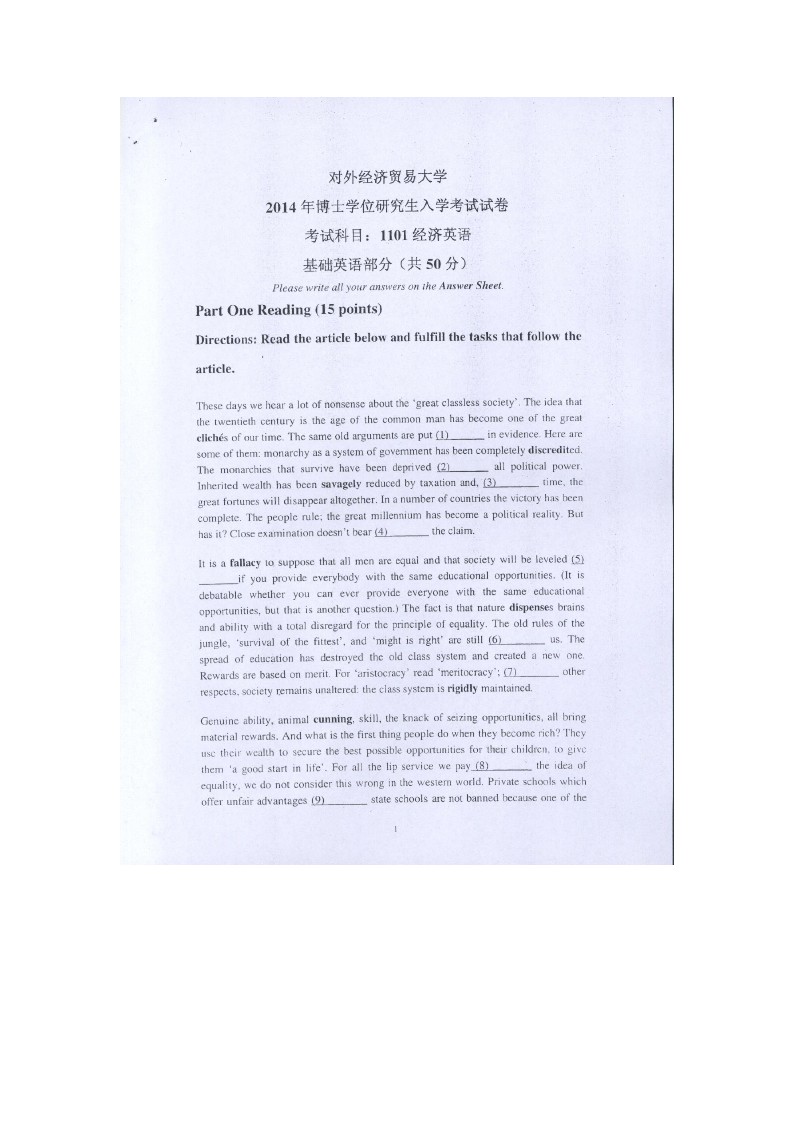 对外经济贸易大学2009-2014考博英语真题和答案详解(31)