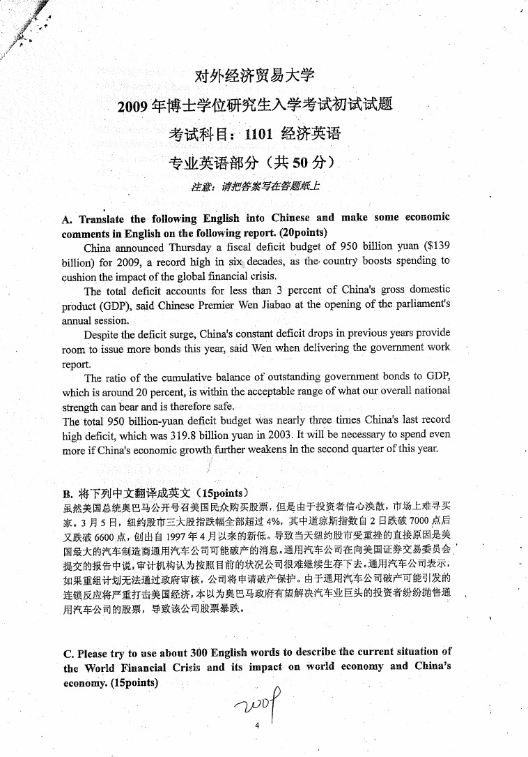 对外经济贸易大学2009-2014考博英语真题和答案详解(4)
