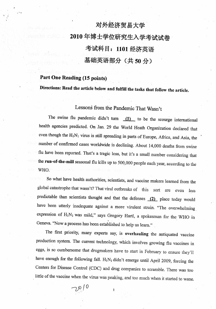 对外经济贸易大学2009-2014考博英语真题和答案详解(5)