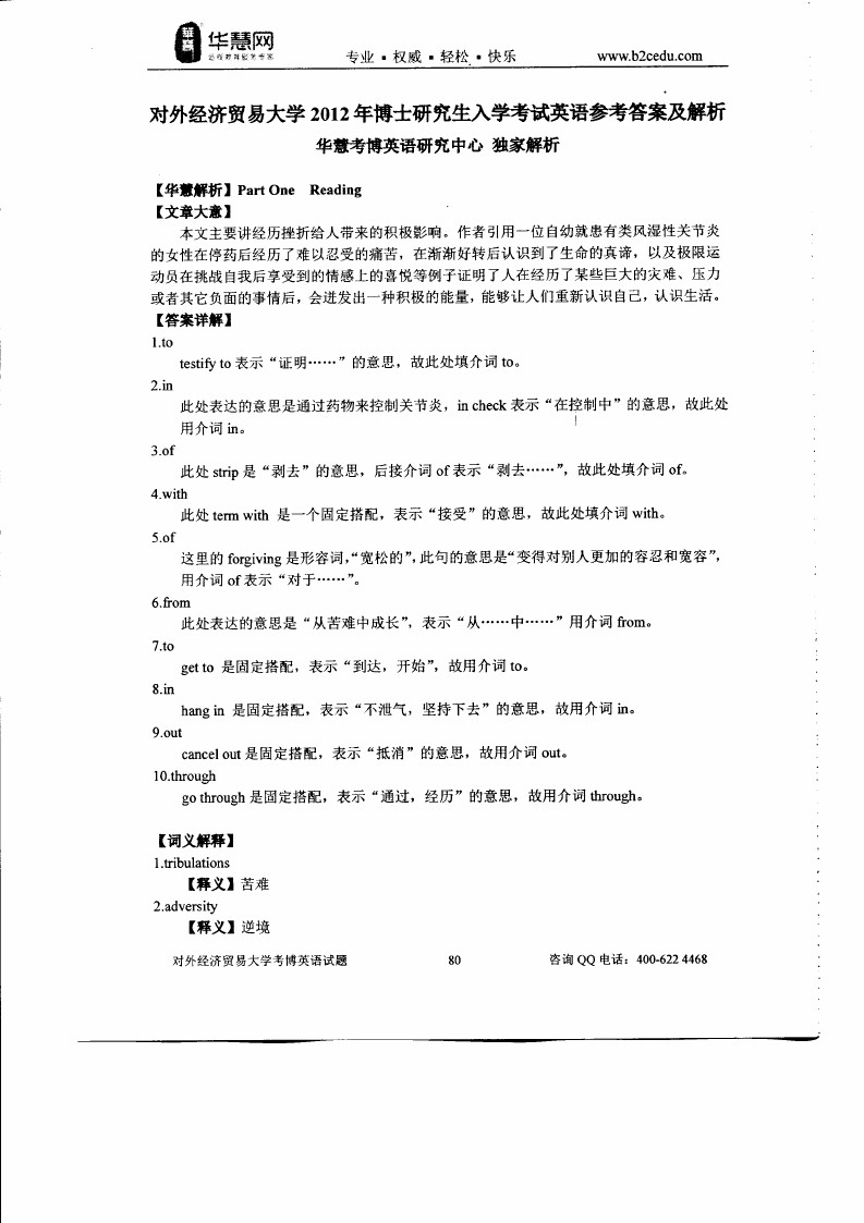 对外经济贸易大学2009-2014考博英语真题和答案详解(51)