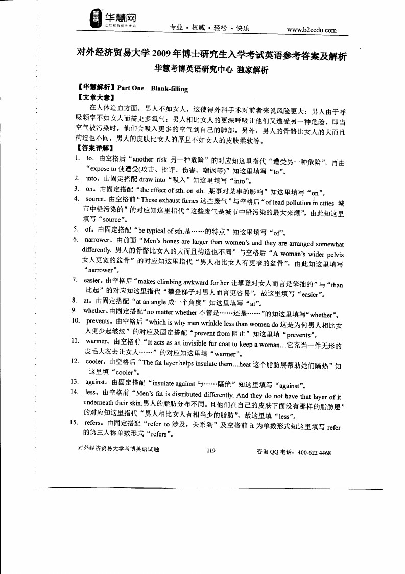 对外经济贸易大学2009-2014考博英语真题和答案详解(71)