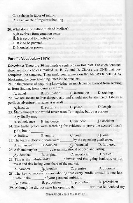 华中科技大学2007-2010年考博英语真题无答案(31)
