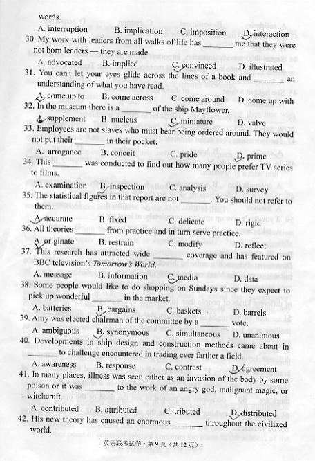 华中科技大学2007-2010年考博英语真题无答案(32)