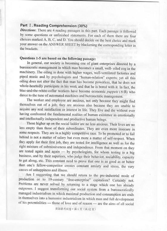 华中科技大学2007-2010年考博英语真题无答案(35)