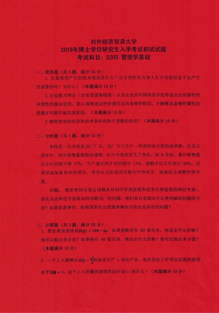 对外经贸大学大部分经济类专业专业课考试科目 ...