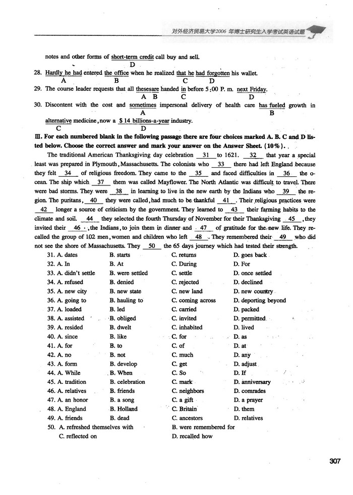 对外经济贸易大学考博英语2005-2017真题+答案解析(13)