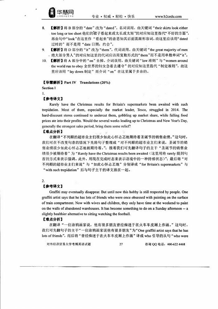 • 对外经济贸易大学2009-2014考博英语真题和答案详解