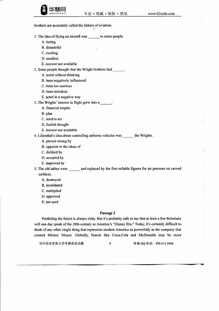 对外经济贸易大学考博英语2005-2017真题+答案解析(140)