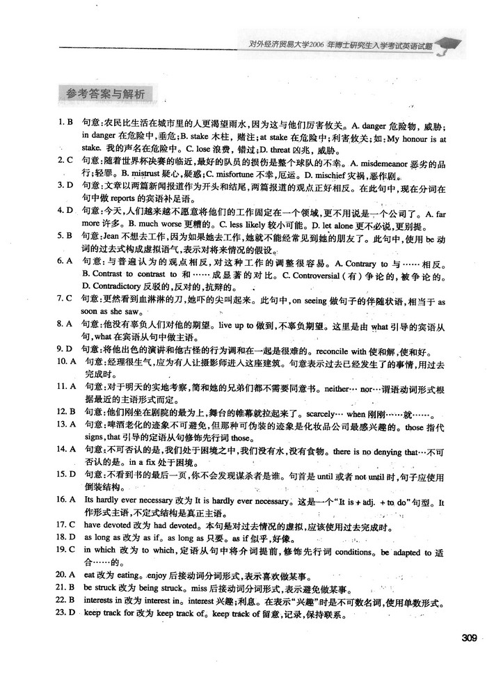 对外经济贸易大学考博英语2005-2017真题+答案解析(15)