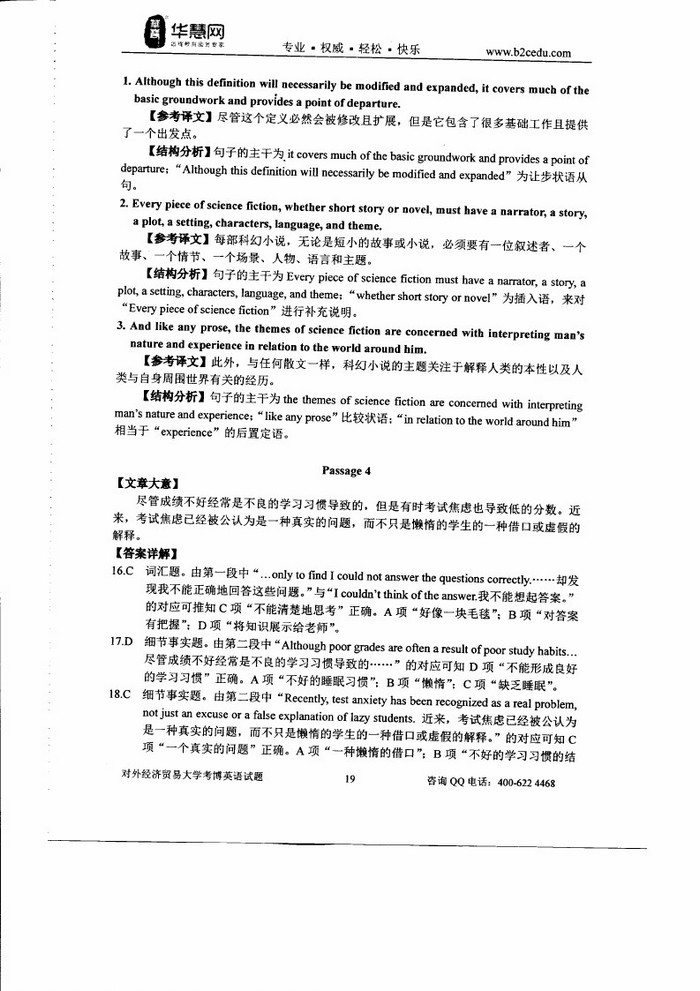 • 对外经济贸易大学2009-2014考博英语真题和答案详解