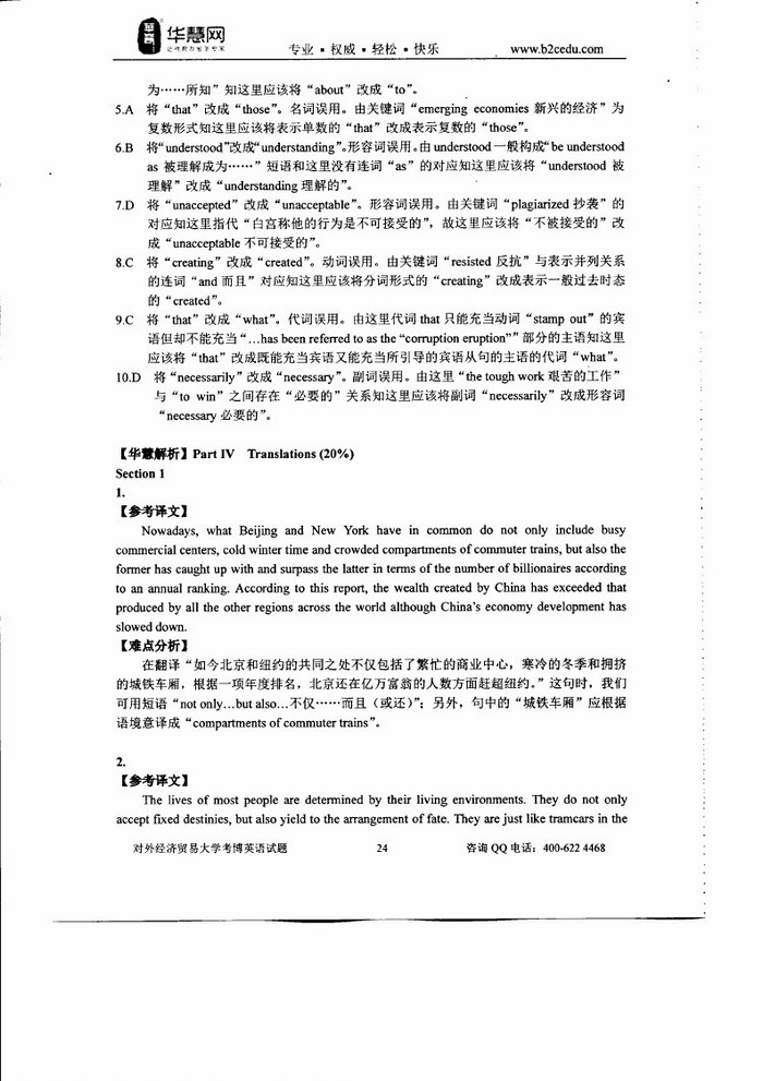 • 对外经济贸易大学2009-2014考博英语真题和答案详解