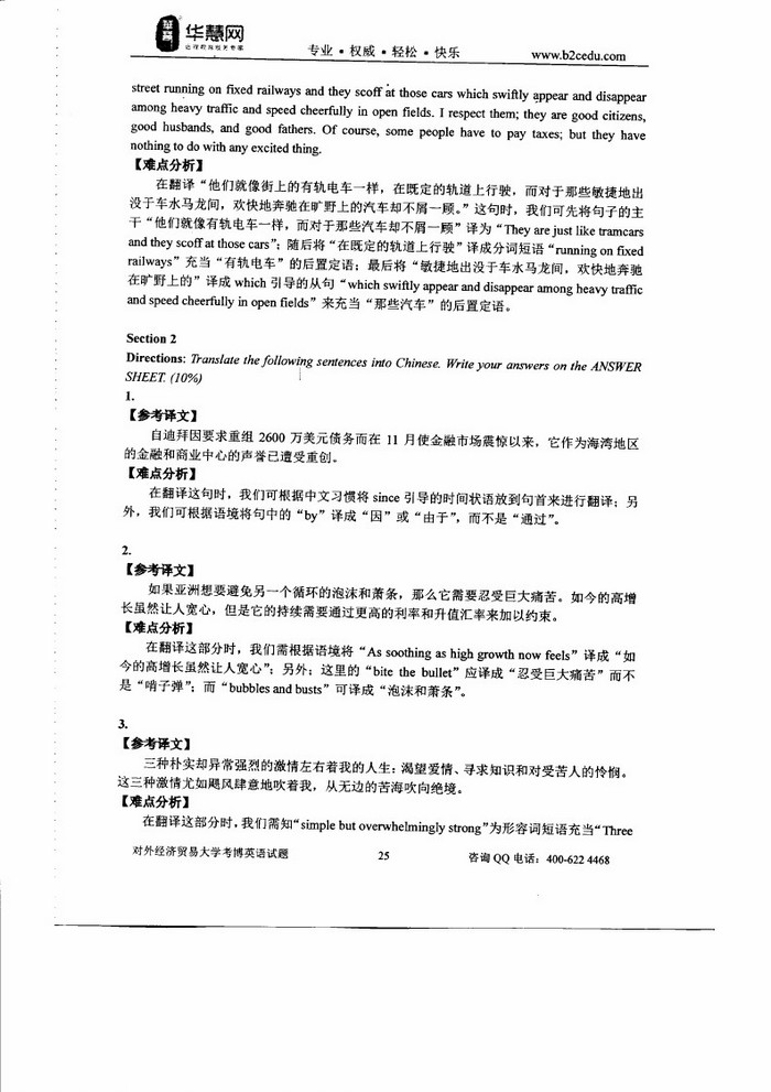 • 对外经济贸易大学2009-2014考博英语真题和答案详解