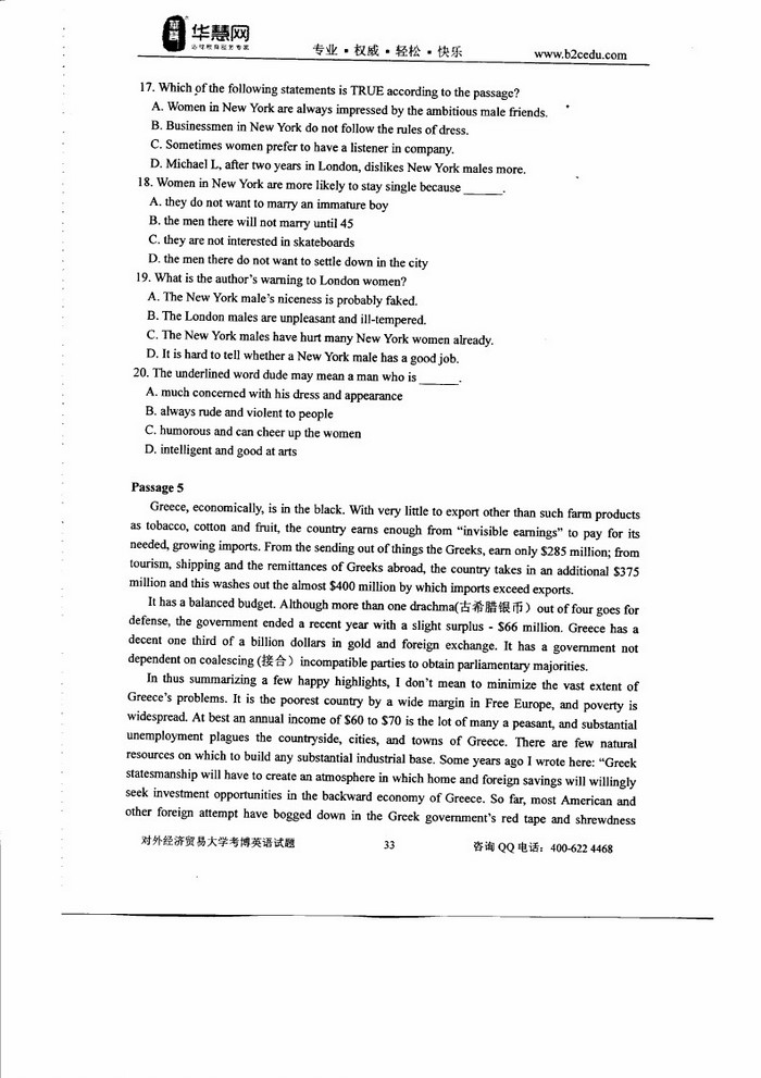 对外经济贸易大学考博英语2005-2017真题+答案解析(168)