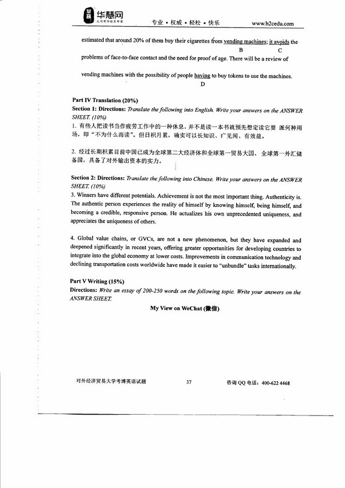 对外经济贸易大学考博英语2005-2017真题+答案解析(172)