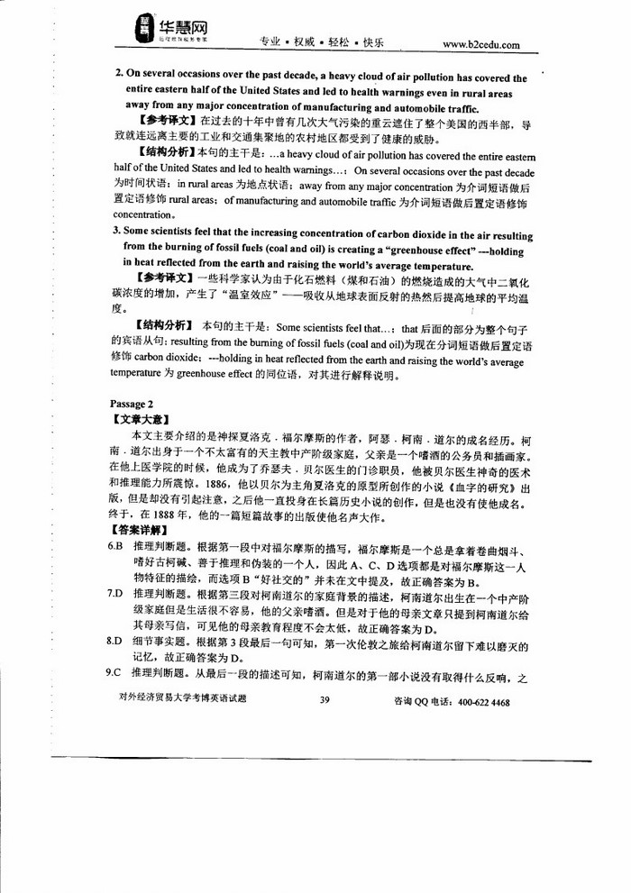 • 对外经济贸易大学2009-2014考博英语真题和答案详解