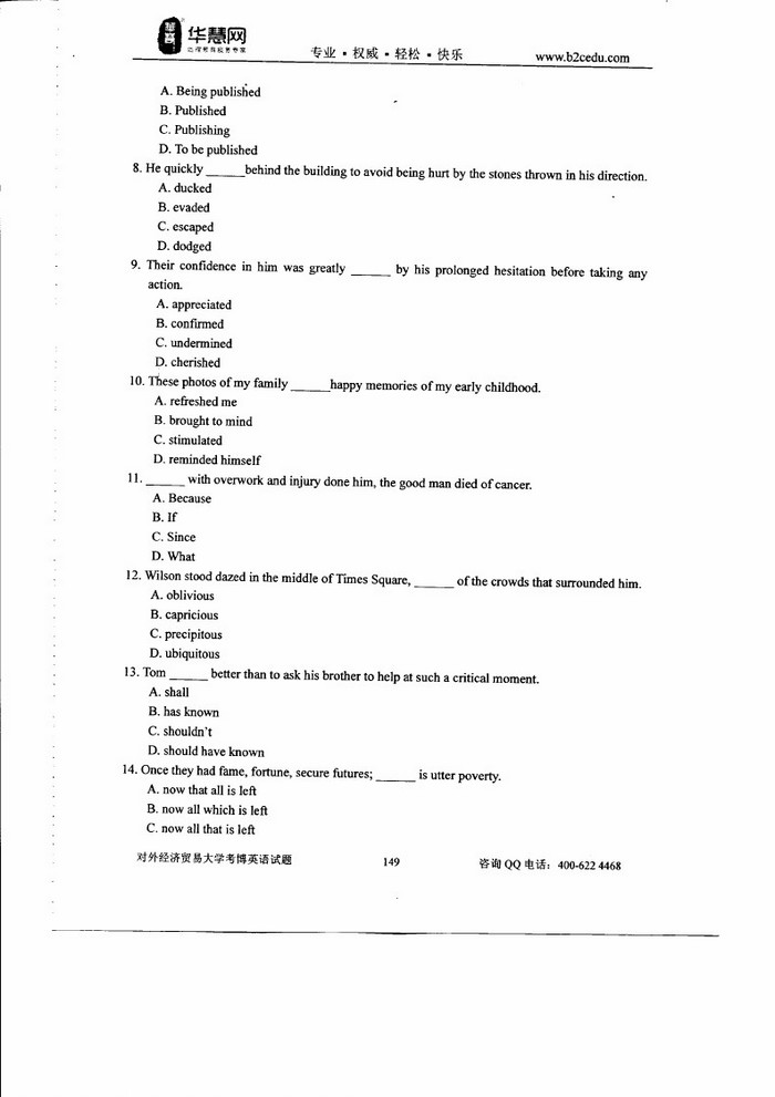 对外经济贸易大学考博英语2005-2017真题+答案解析(2)