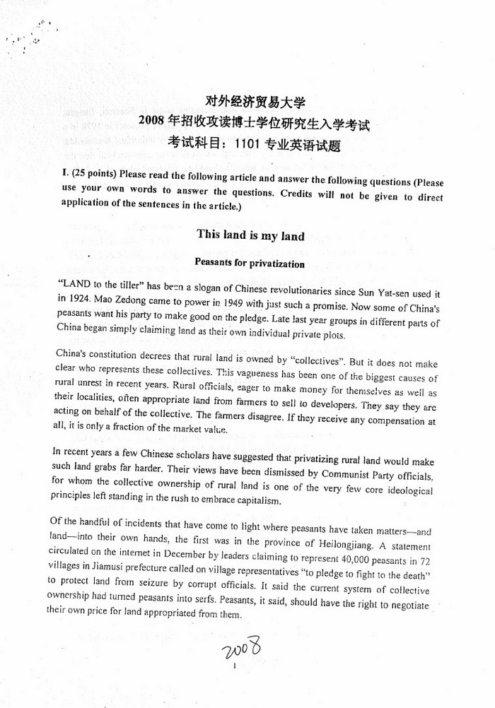 对外经济贸易大学考博英语2005-2017真题+答案解析(29)