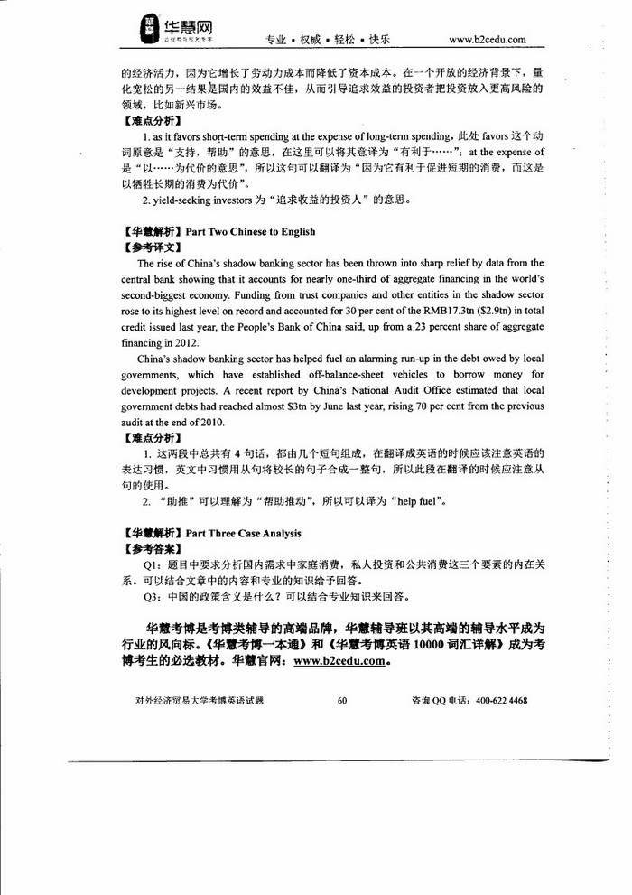 • 对外经济贸易大学2009-2014考博英语真题和答案详解
