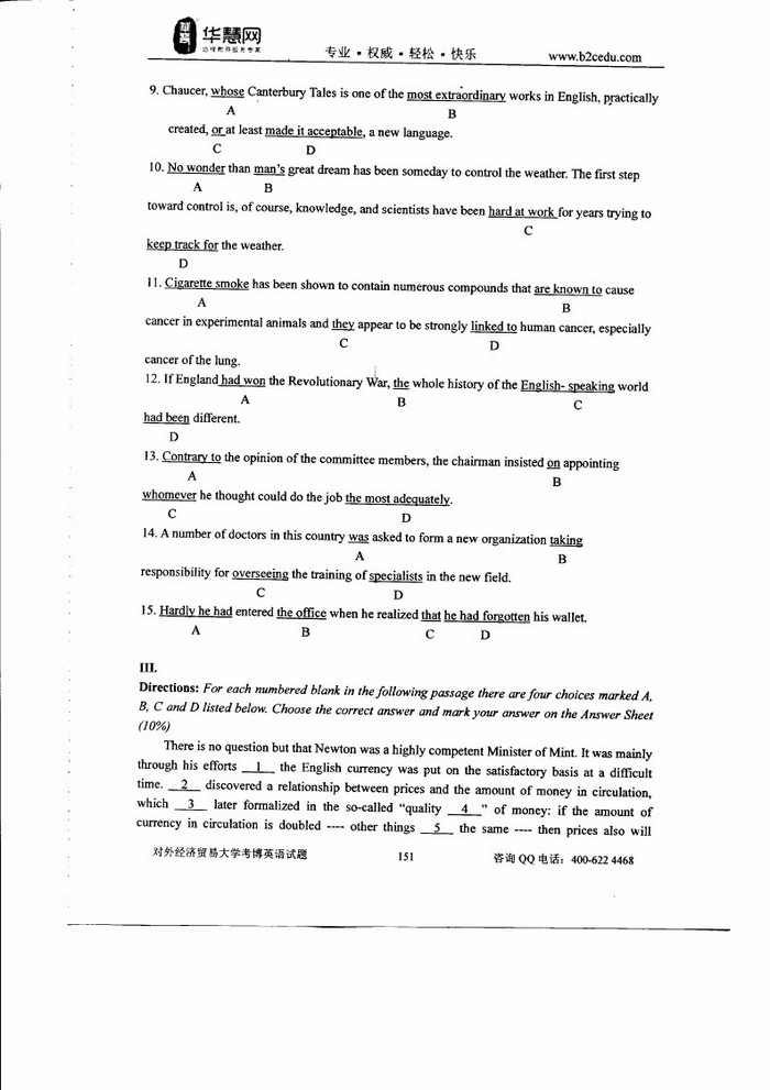 对外经济贸易大学考博英语2005-2017真题+答案解析(4)