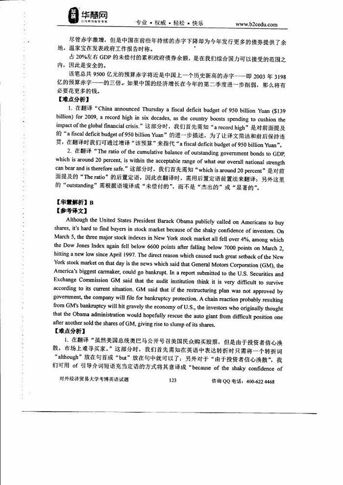 • 对外经济贸易大学2009-2014考博英语真题和答案详解