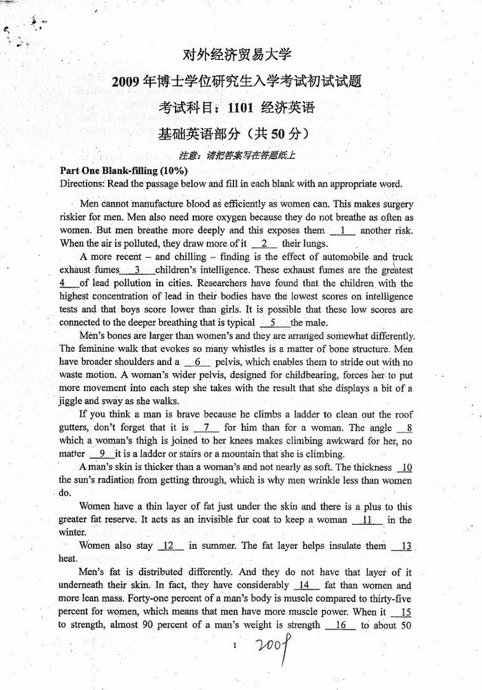 对外经济贸易大学考博英语2005-2017真题+答案解析(71)