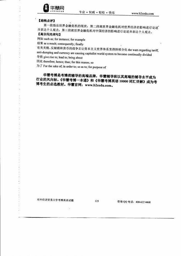 • 对外经济贸易大学2009-2014考博英语真题和答案详解