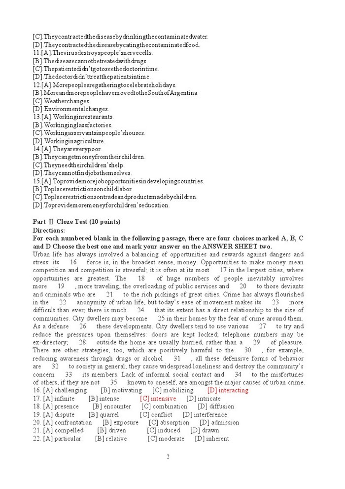 英语二完型填空、阅读理解(4篇文章阅读+新题型)、翻译(英翻中)、作文(大作文+小作文)