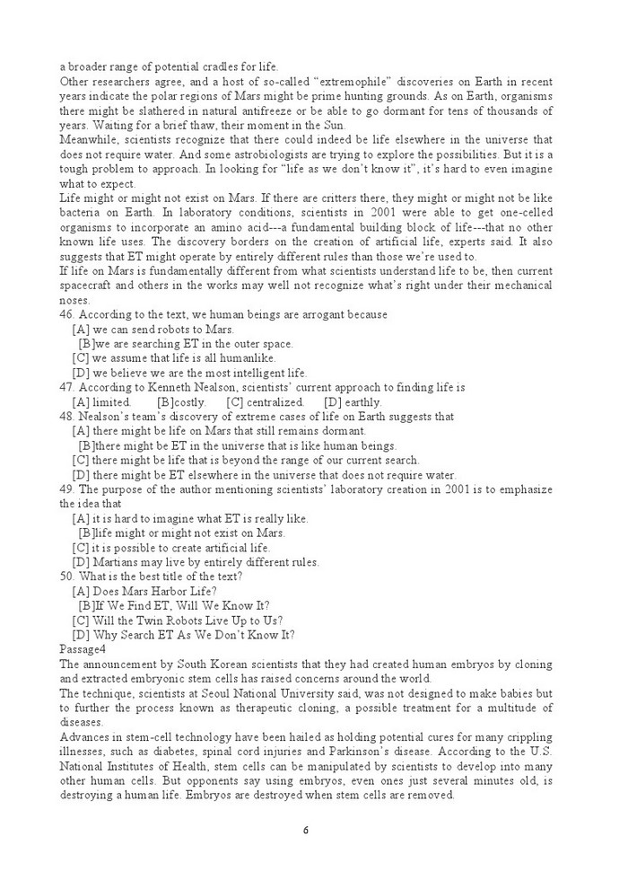 中央民族大学考博真题英语2005-2008真题2011题型(6)