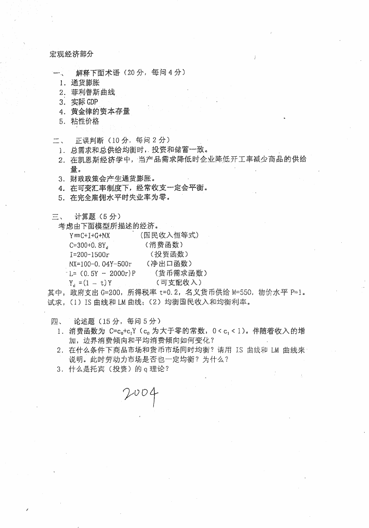 对外经济贸易大学2017,2015-2004经济学基础与数学考博真题(2)