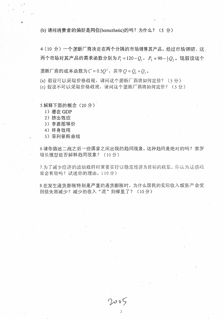 对外经济贸易大学2017,2015-2004经济学基础与数学考博真题(4)
