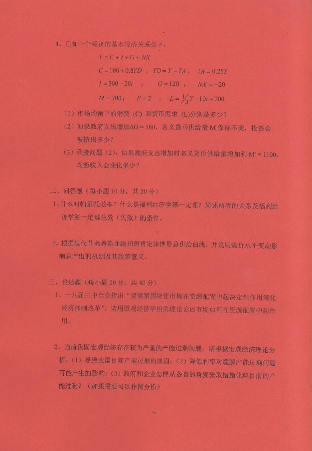一、名词解释 1、产品质量 2、食品安全法 3、货币政策委员会 4、国企的分类 5、市场主体 二、简答 1、地方债务的发行权限和用途 2、税法构成要素 3、商业银行设立条件和程序 4、互联网不正当竞争行为认定条件 三、论述 1结合反垄断法14条分析经济法和合同法在调整合同关系的区别 2、市场监管权的性质,内容和体 ...