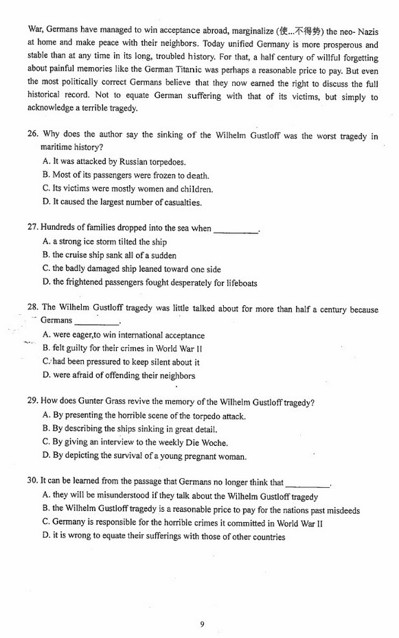 • 中央民族大学考博真题英语2005-2008真题2011题型