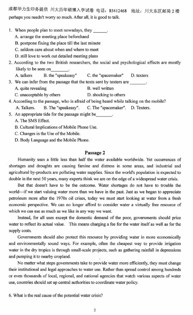 • 中央民族大学考博真题英语2005-2008真题2011题型