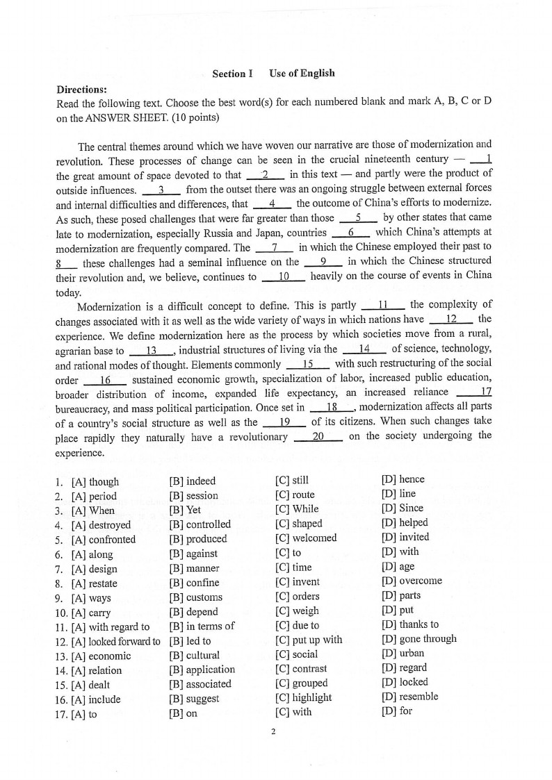 • 东华大学2015年硕士翻译硕士英语211考试试题
