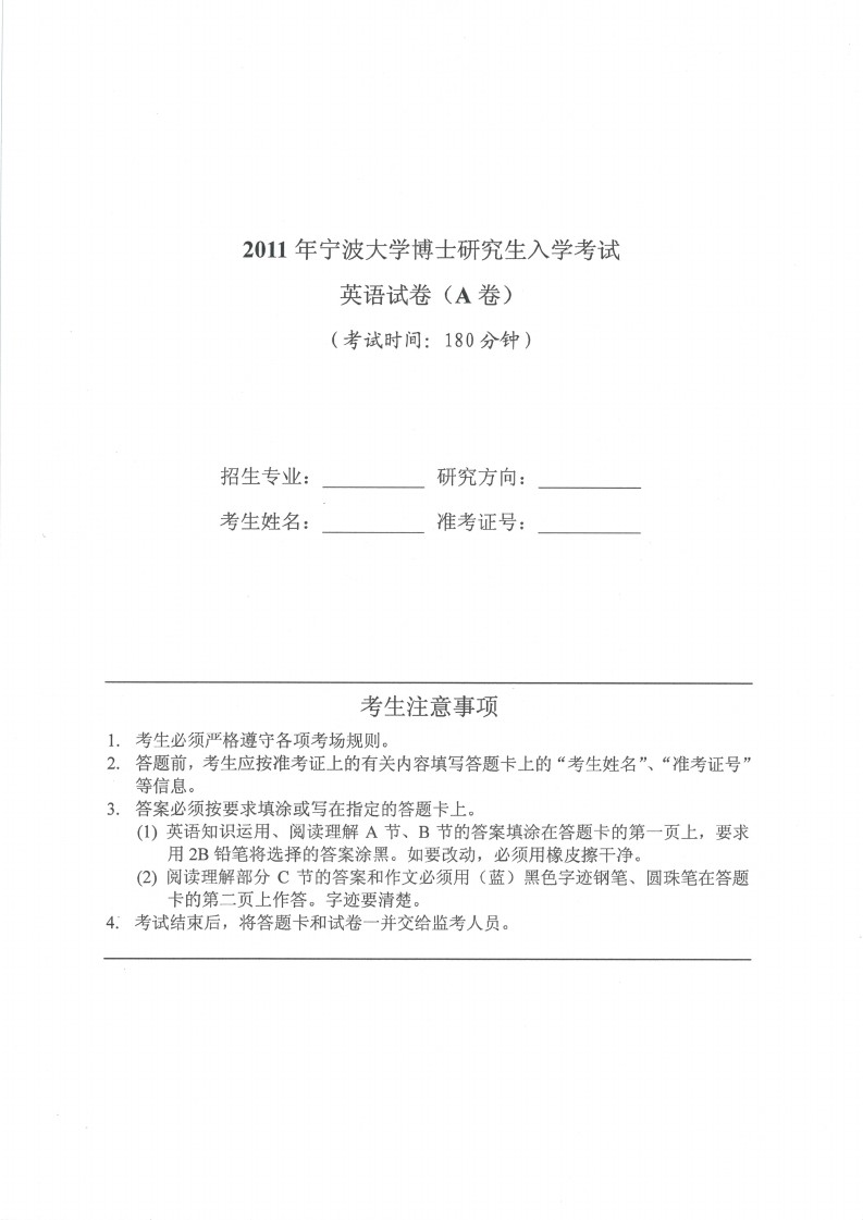 2009--2015年宁波大学考博公共英语考博真题(30)