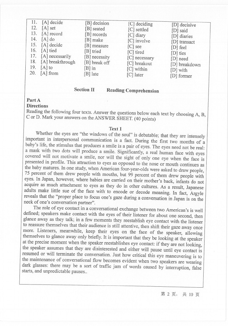 • 东华大学2015年硕士翻译硕士英语211考试试题