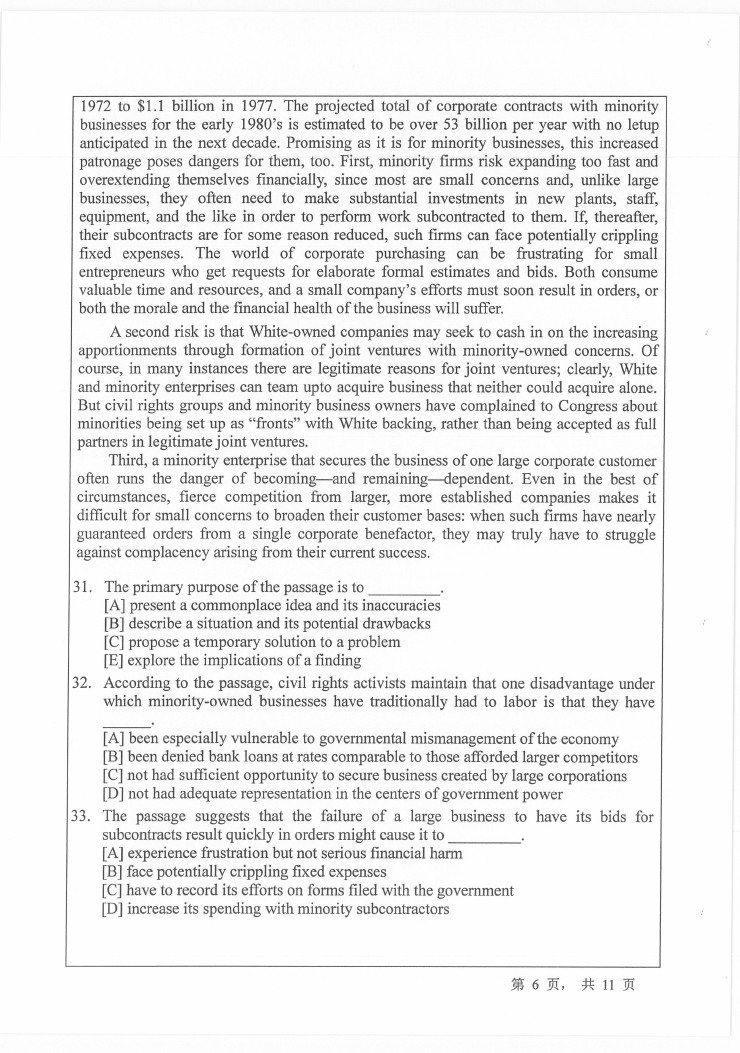 ㈠基础英语: 20个单选,几乎都是词汇辨析,难度适中,撑死专八难度,比如说euphoria/rapture,customary/cumstom/accustomed 完形填空(20个) 2篇阅读,专八难度 一段英译汉 一段汉译英 作文 北大学生毕业后选择卖猪肉,有人认为他这么做是浪费了他在名校所享受到的资源,有人支持他的选择。你的看法 ㈡大综合: ● ...