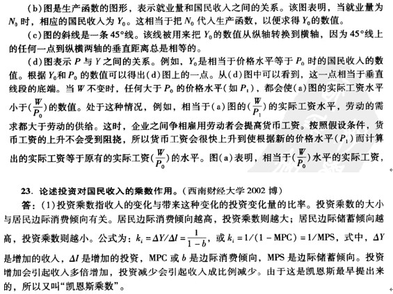 (2)投资乘数定理成立的条件。在消费函数或储蓄函数既定的条件下,一定的投资可以引起收入某种程度的增加,即投资的乘数作用可以相当顺利的发挥出来。②要有一定数量的劳动可以被利用。没有充足的劳动力,投资增加并不会使产量和收入增加。③要有一定数量的存货可以利用。