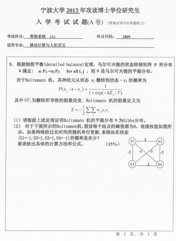 2013-2015年宁波大学3809智能系统A考博真题(3)