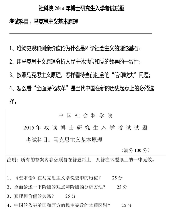 中国社会科学院马克思主义基本原理2010-2020年考博真题(3)