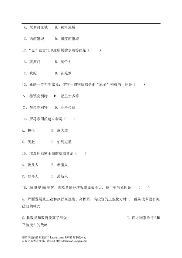 2011历史学专业考研自测模拟试题及参考答案(3)