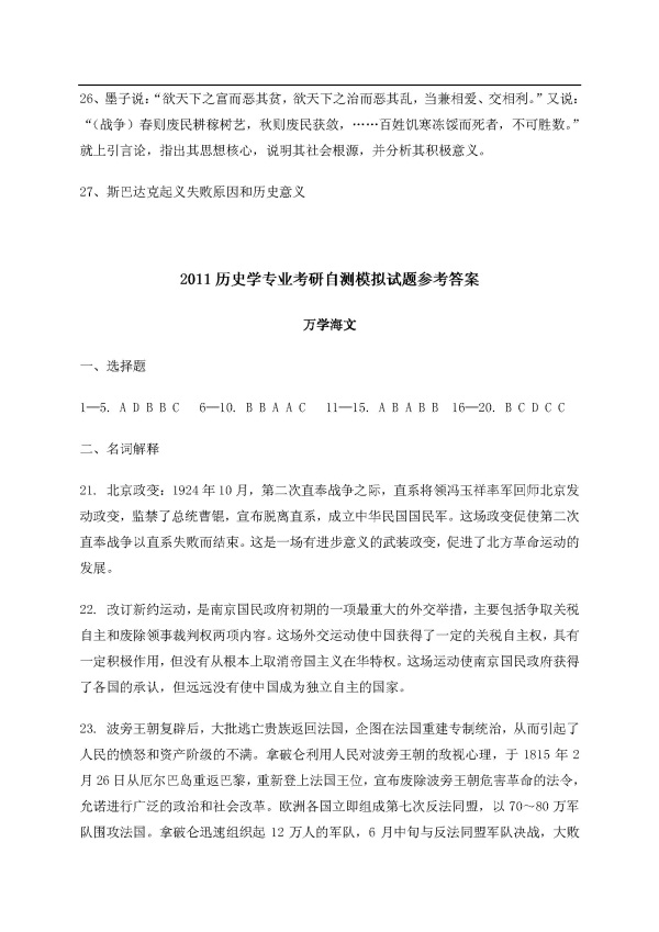 2011历史学专业考研自测模拟试题及参考答案(5)