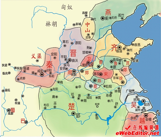 吴国在江苏南部,越国在浙江北部,受中原各国的影响,迅速发展。公元前496年,吴越战于携李,越国战胜吴国,吴王阖闾受伤而死,夫差即位后于前494年打败勾践,以为已解后顾之忧,挥师北上,争霸中原。夫差在黄池会盟诸侯,勾践刻苦自砺,壮大力量,攻入吴国都城姑苏,于公元前473年灭吴,此后越国北上会盟诸侯于徐州,号称霸主。